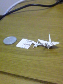 あと今日授業中暇だったけ、どこまで小さい鶴が折れるのかやってみたら1円玉くらいの紙で折れた。これ以下は潰れて綺麗に折れない。ピンセットがあればもっと小さく折れるハズ。